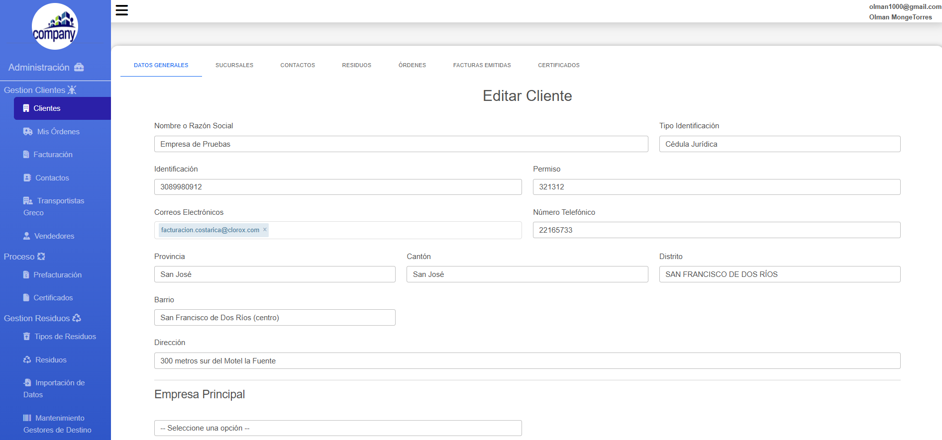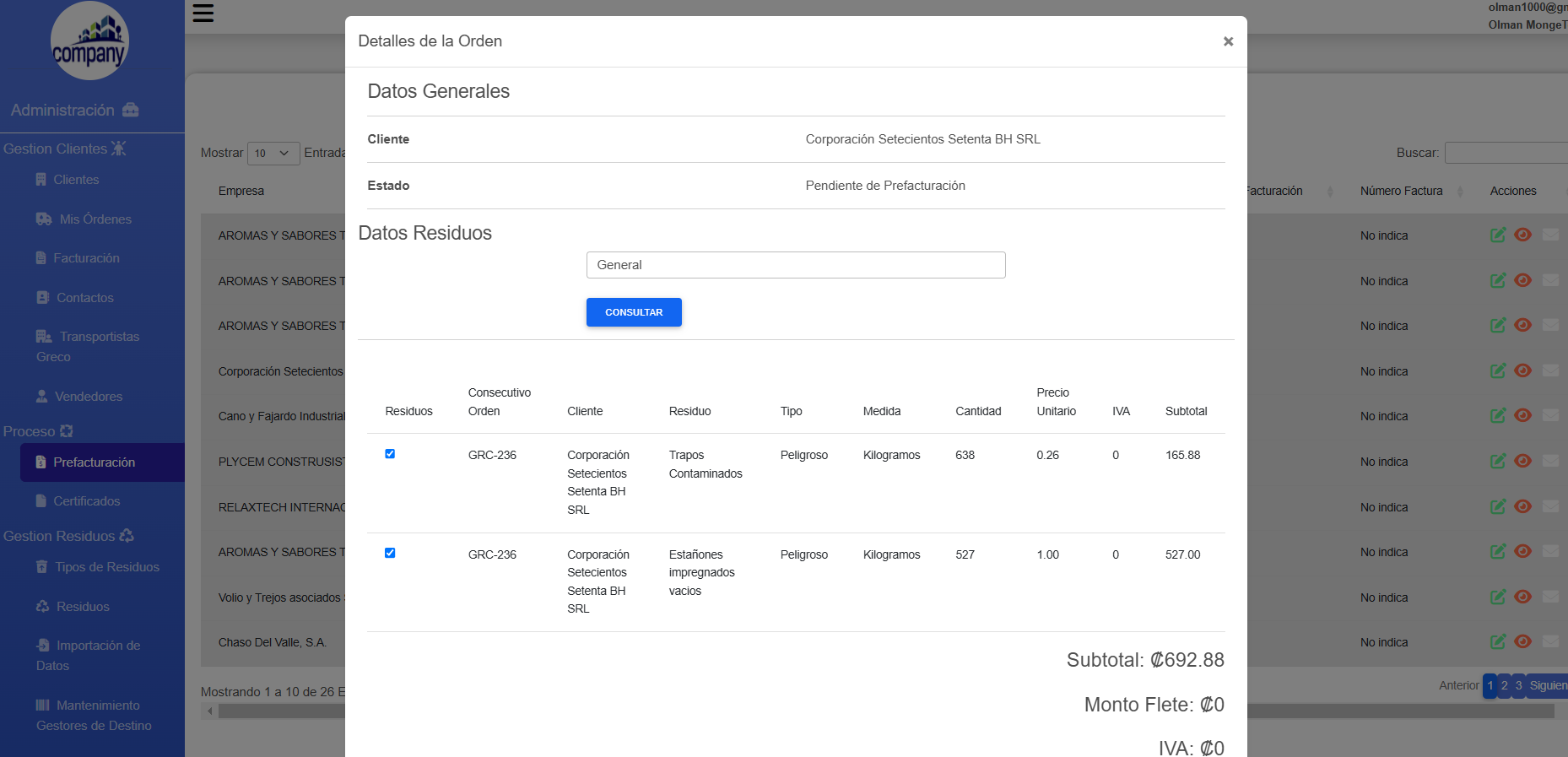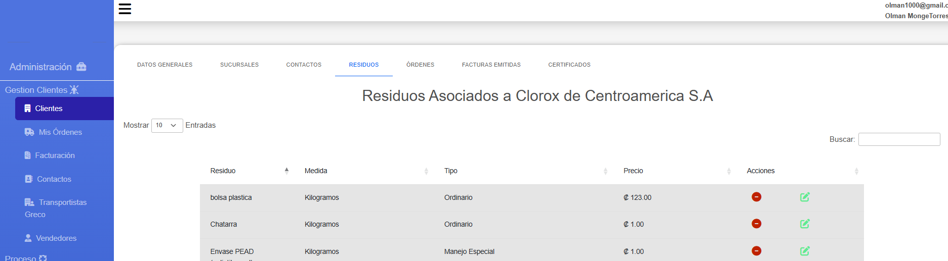 - Generación de facturación y certificados de recolección en formato PDF, enviados por correo electrónico.