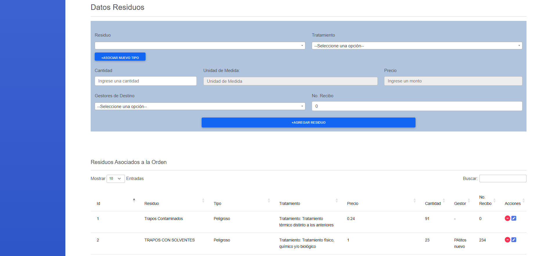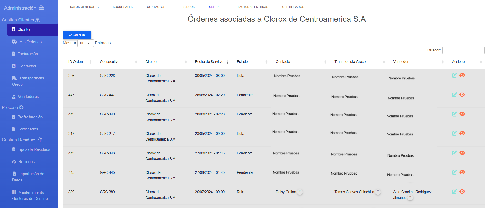 - Las órdenes permiten añadir detalles, como productos de recolección y sus cantidades.